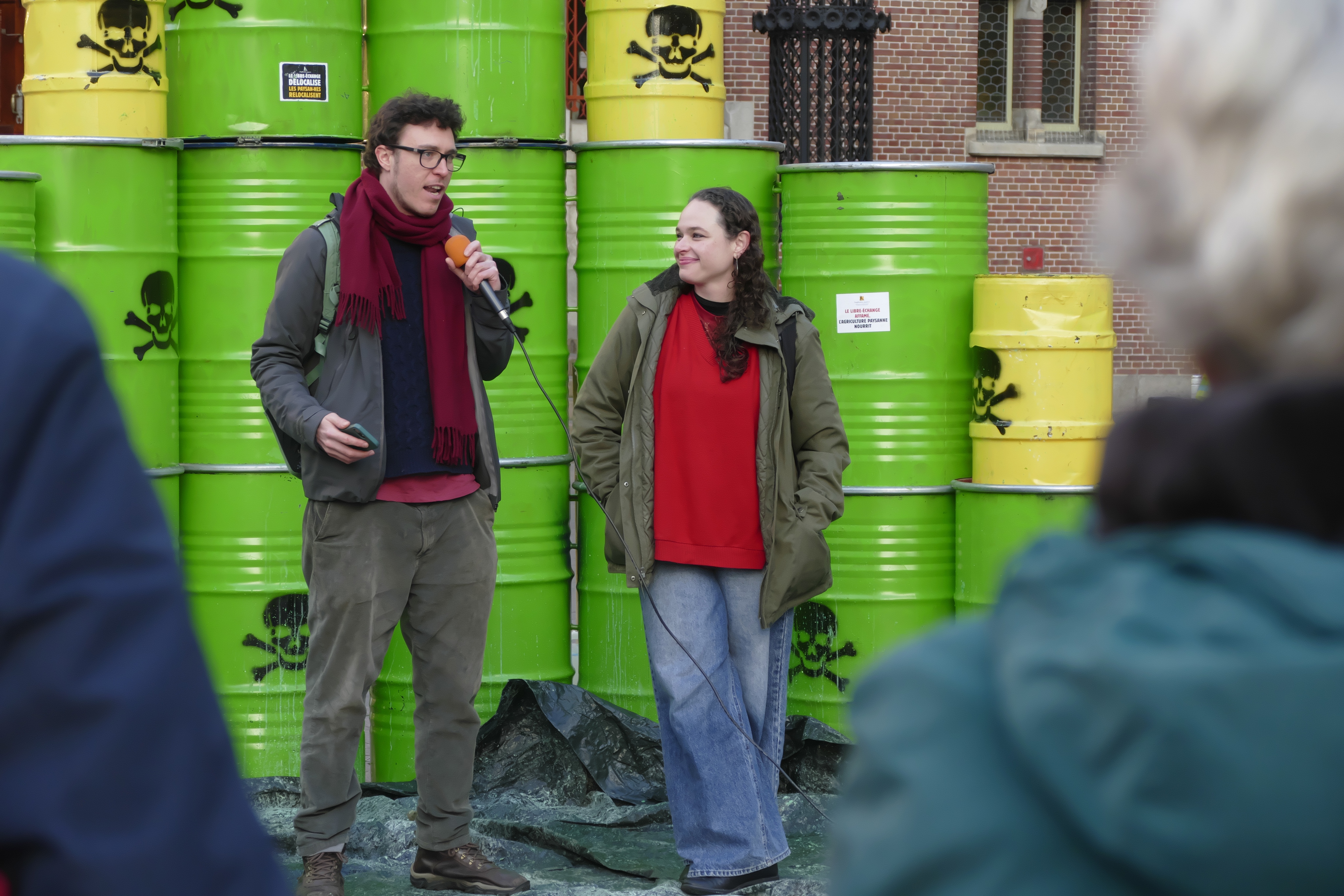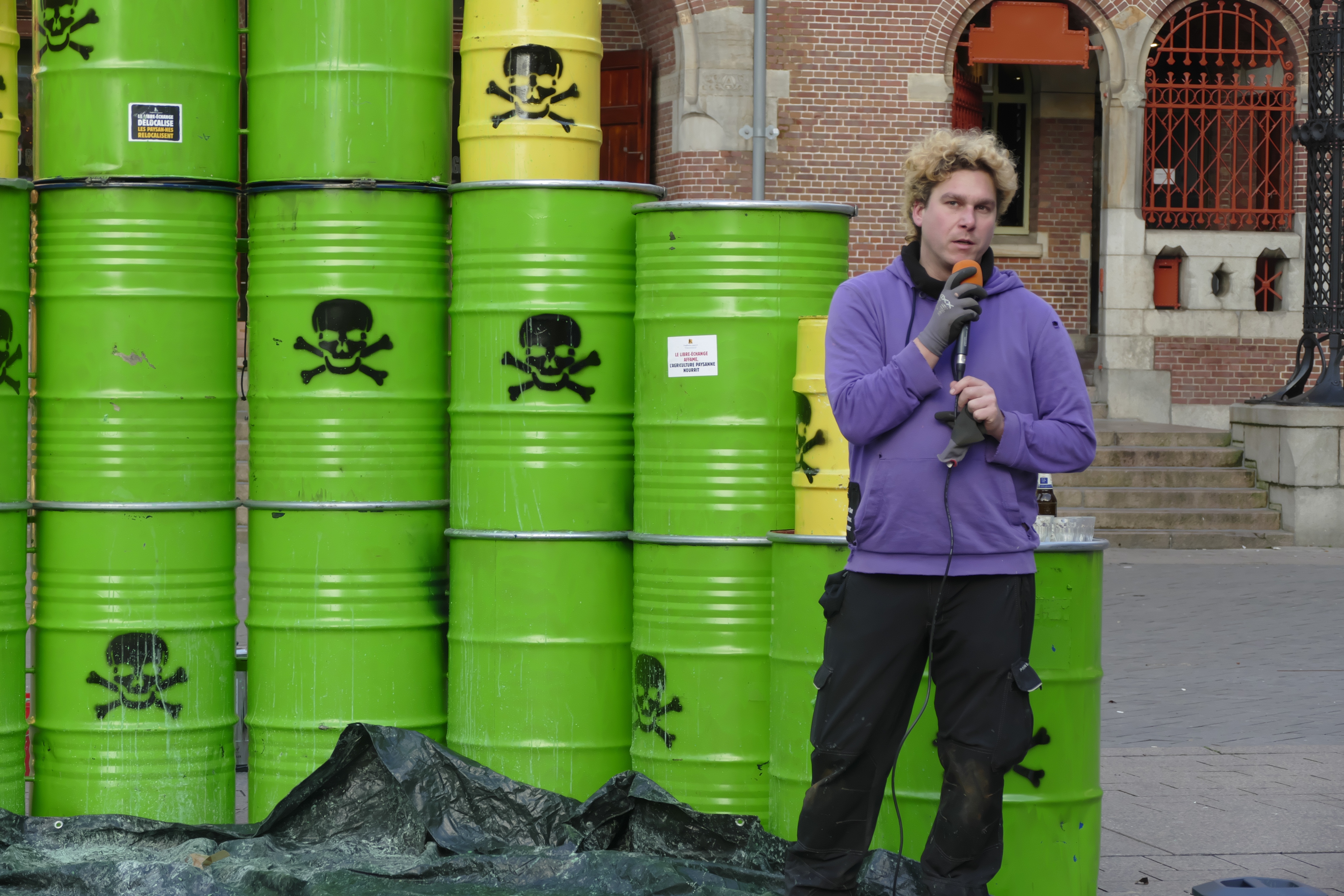 Om onze regering te herinneren aan de schadelijke gevolgen van het EU-Mercosur verdrag ontvingen we een busje met pesticidenvaten, vol groene slijm op het Beursplein in Amsterdam. Daar gaven Valentin Friedl (Via Campesina), Guus Geurts (Platform Aarde Boer Consument), Juliana Rodrigues de Senna en Danilo Borghi (Transnational Institute) en Ruchama Bwefar (GroenLinks-PvdA) allen speeches over de rampzalige gevolgen van EU-Mercosur verdrag voor boeren, het klimaat, de Inheemse bevolking en werkenden in de Mercosur. Ze hadden allemaal een duidelijk oproep aan de Nederlandse regering: stop het EU-Mercosur verdrag!