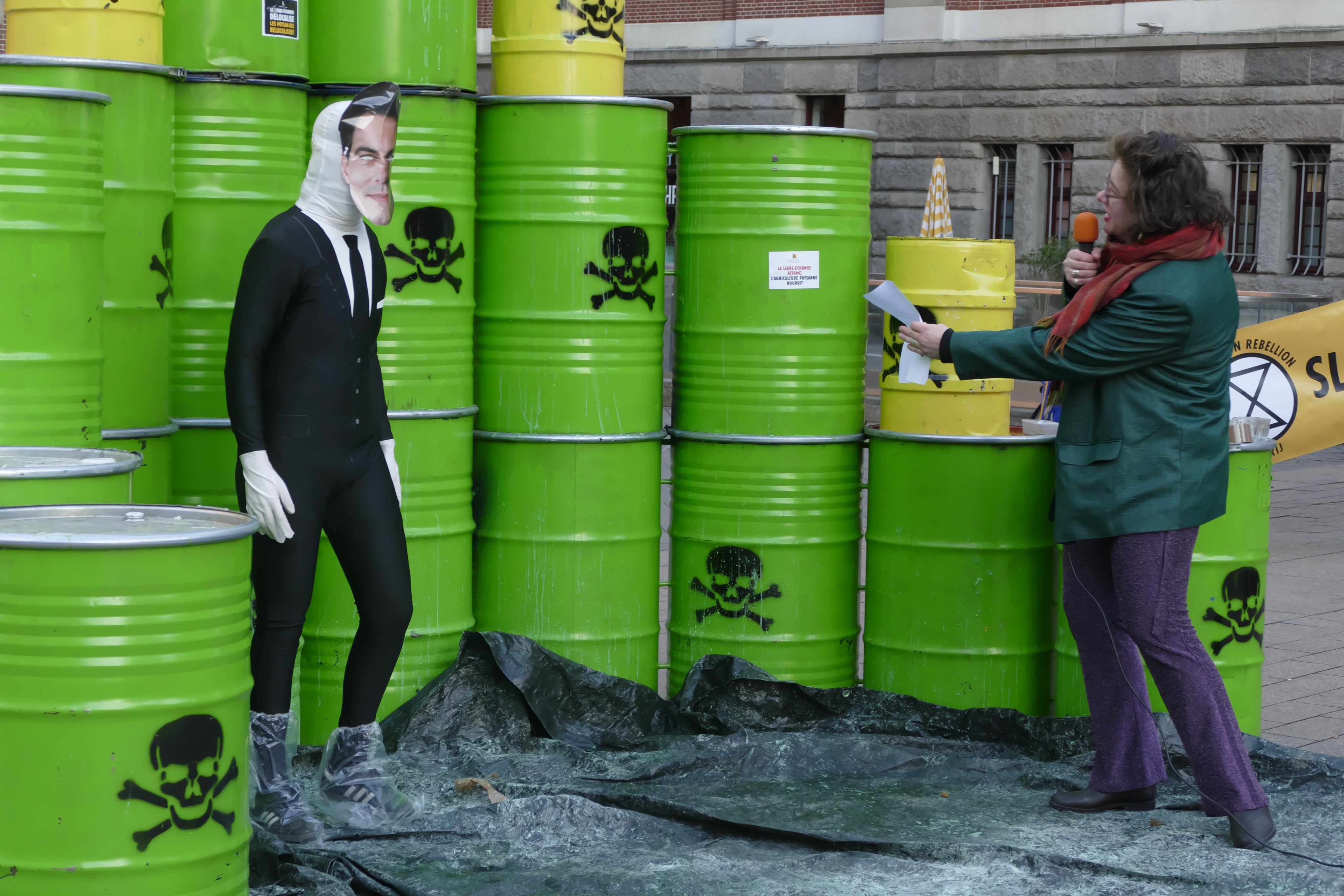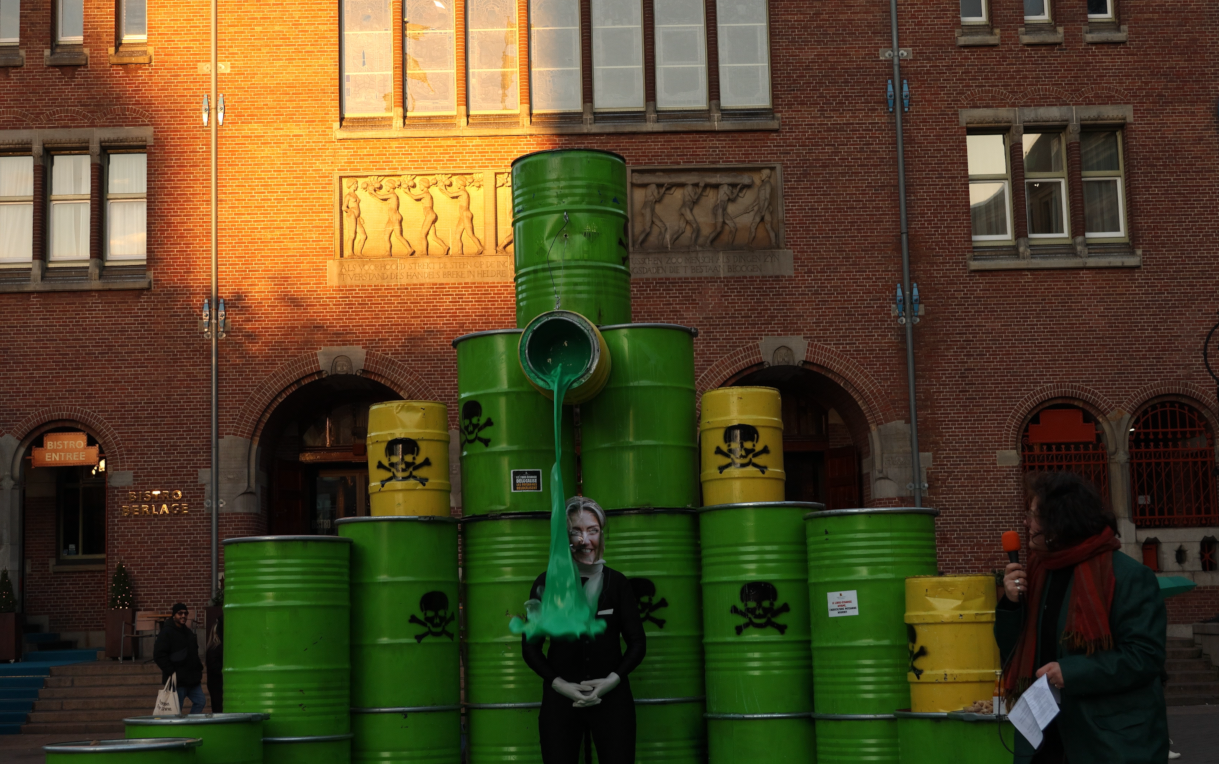 Afgelopen vrijdag voerde Handel Anders met XR Landbouw actie tegen het besluit van het demissionair kabinet om in te stemmen met het EU-Mercosur verdrag. Voor de Amsterdamse beurs deden politici een quiz over het EU-Mercosur verdrag. Bij teveel foute antwoorden werden zij gestraft met de giftige gevolgen van het EU-Mercosur verdrag! Deze ludieke actie was onderdeel van de “Toxic Trade Tour” — een mobiel protest dat door tien EU-landen trekt om de sociaal-ecologische en gezondheidsgerelateerde gevaren van het vrijhandelsverdrag aan het licht te brengen.