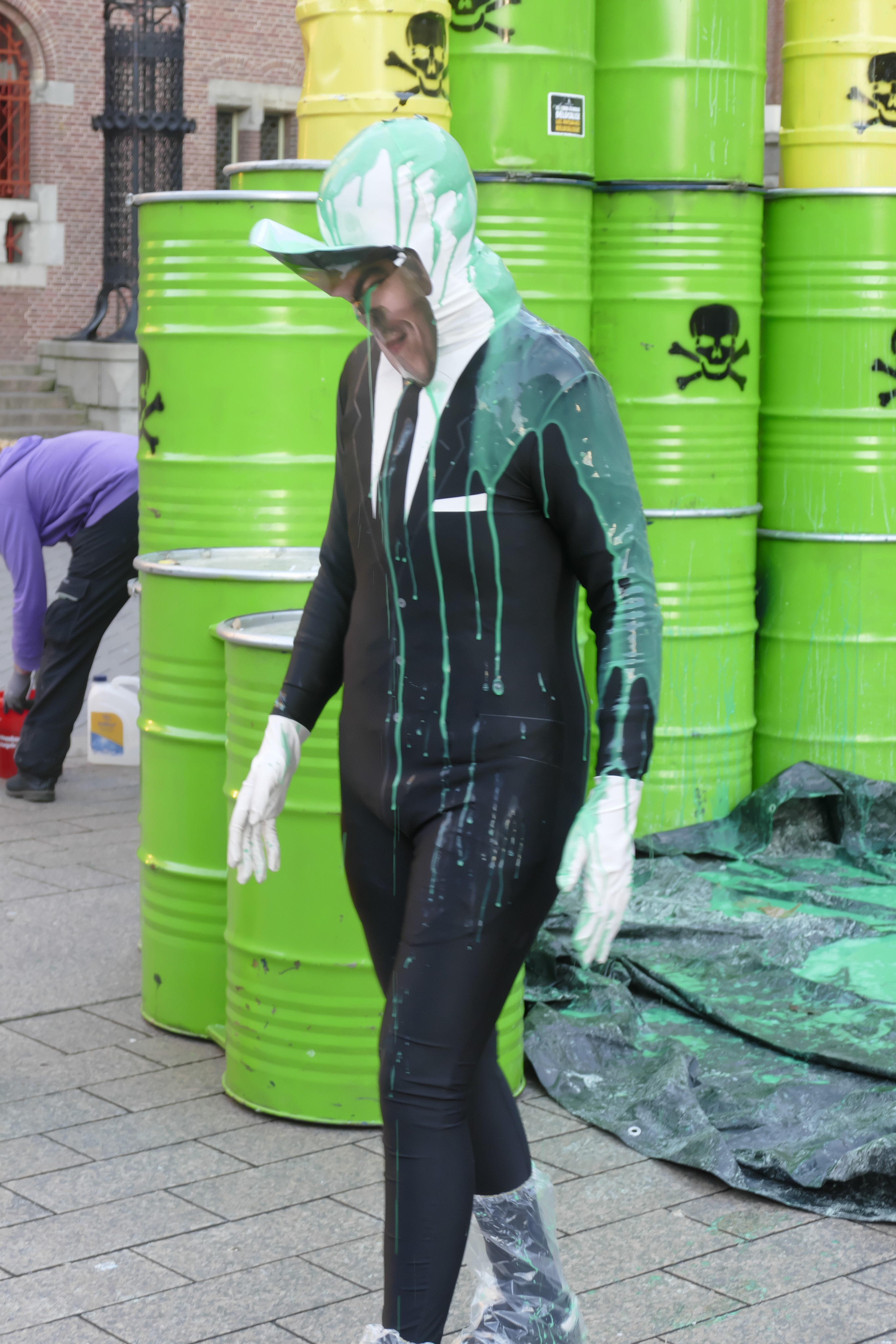 Daarna was het tijd voor de quiz over EU-Mercosur. Om de beurt werden Rob Jetten (D66), Henri Bontenbal (CDA) en Dilan Yeşilgöz (VDD) het podium opgeroepen om te vragen beantwoorden over het EU-Mercosur handelsverdrag. In lijn met hun stemgedrag in de Tweede Kamer beantwoorde zij allen de vragen fout en werden als straf overspoeld met giftig pesticiden slijm.